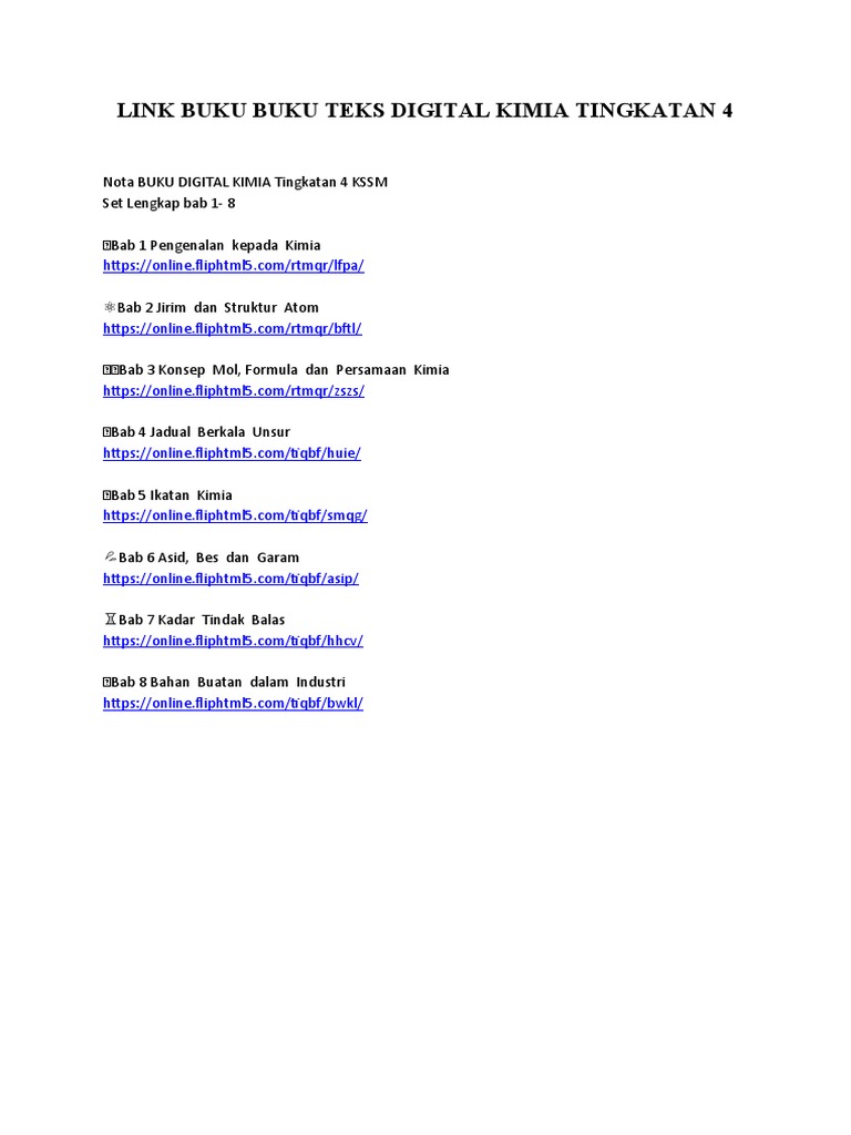 Download & view kimia tingkatan 4 : Terdapat 10 bab utama yang murid perlu kuasi. Sekiranya ya, di bawah dikongsikan nota pendidikan islam tingkatan 4 (lengkap) kssm untuk rujukan semua. Bab 6 pembentukan kerajaan islam dan sumbangannya. Text of modul kimia tingkatan 4. Organisma yang mensistesis sendiri bahan organik kompleks menggunakan tenaga cahaya atau tenaga kimia. Jom kita baca lebih lanjut, apa yang kami buat dalam kelas. Sains tingkatan 4 bab 10. Please fill this form, we will try to respond as soon as possible. Home nota tingkatan 4 nota padat kimia tingkatan 4 kssm. Kimia bab 9 tingkatan 4. Buku teks kimia tingkatan 4 kurikulum standard sekolah menengah (kssm) ini ditulis. You can do the exercises online or download the worksheet as pdf.