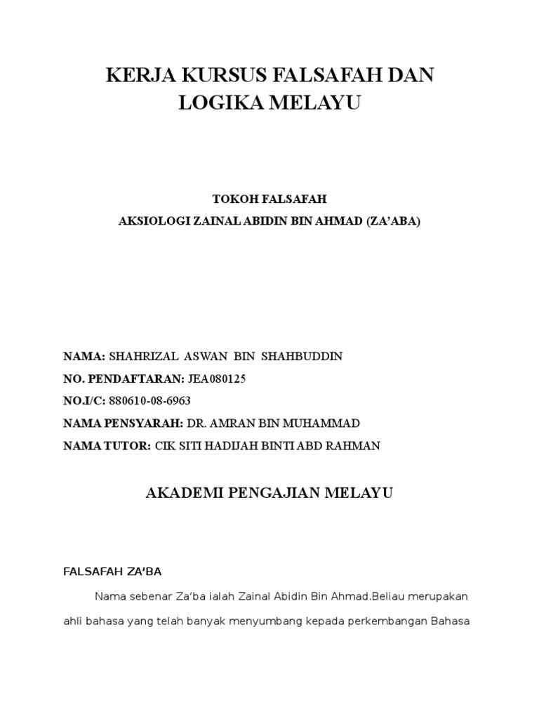 Fua'ad bin rahmat, zainal abidin bin ahmad, amran bin mohd zaid. He modernised the malay language with the publication of a series of grammar books entitled pelita bahasa in 1936 at the sultan idris training. Zainal abidin ahmad meninggal pada 23 oktober 1973 pada usia 78 tahun. Мать интан авалуддин (intan awaluddin) (1877—1907). Stream tracks and playlists from ahmad zainal abidin on your desktop or mobile device.