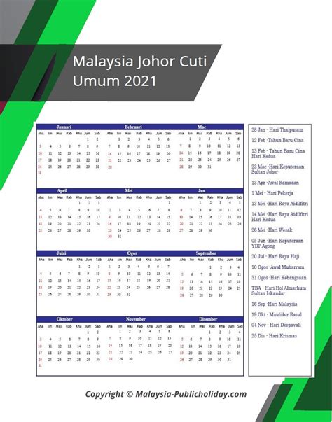 Kalendar cuti umum negeri johor tahun 2021 (hari kelepasan am). Berikut adalah cuti umum 2019 di kerjakosong.co. Tarikh berikut mungkin diubah suai. Tarikh cuti dan penggal persekolahan diumumkan oleh kpm adalah sama bagi. 23 nov 2019 (sabtu) 1 jan 2020 (rabu) sila lawat moe.gov.my untuk pengumuman asal.